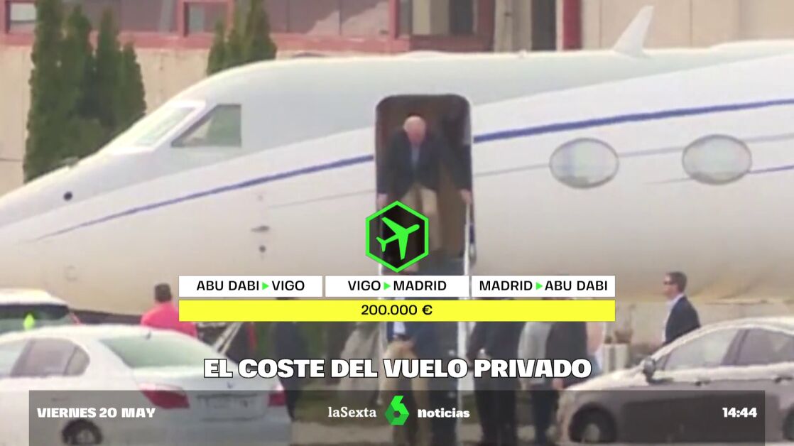 ¿Cuánto cuesta un viaje así? Salida desde Abu Dabi y vuelo directo a Vigo. Pasó por Madrid el lunes y regresó de nuevo a Abu Dabi. Según el modelo de avión, un Gulfstream IV - G450, y el planning del rey, podría rondar los 200.000 euros. El emérito realizará tres viajes con él, el segundo a Madrid y el tercero de vuelta a Abu Dabi. La otra gran incógnita es quién se hace cargo de la factura de estos viajes. Aunque se especula con que han podido costearlo amigos del emirato, lo cierto es que a esta hora se desconoce quién es el pagador.