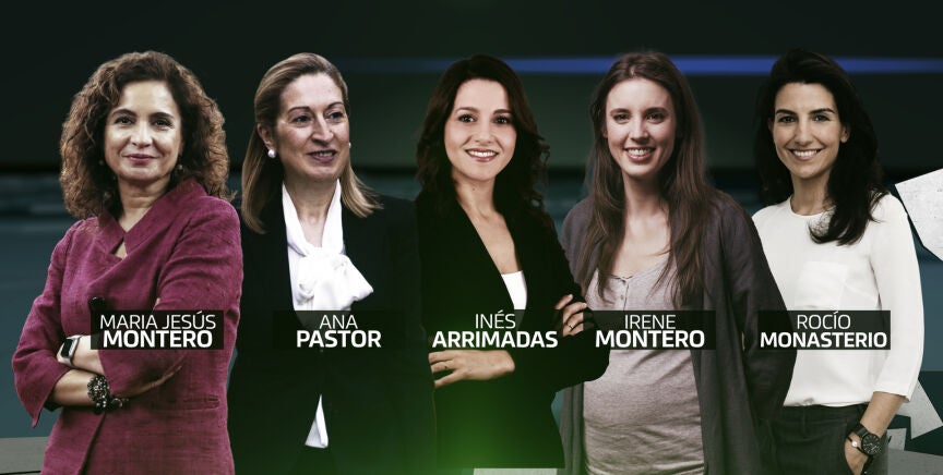De izquierda a derecha, Irene Montero ocupará la primera posición, seguida de Ana Pastor, Inés Arrimadas, María Jesús Montero y Rocío Monasterio.