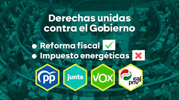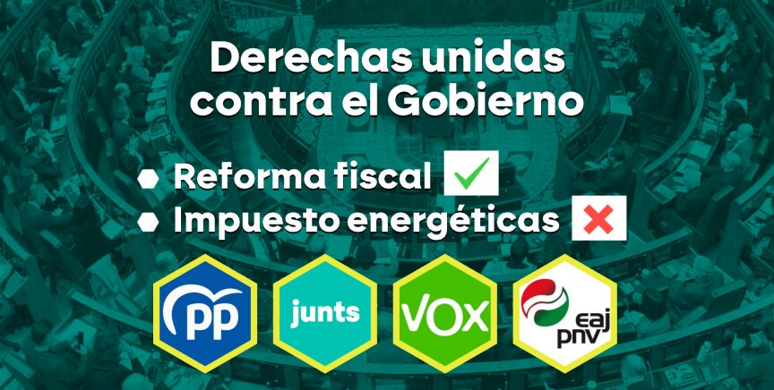 El Gobierno de coalición pactó con sus socios de izquierda la prórroga de este gravamen sobre los beneficios extraordinarios de estas gigantescas empresas. Pero resulta que aunque a veces se nos olvide, en el Congreso las derechas son mayoría. Y lo estamos viendo especialmente en las últimas semanas: el bloque derecha, ultra derecha y derechas centrífugas: PP, Vox, PNV y el Junts de Puigdemont se muestran muy juntos. Son partidos de derechas que coinciden en temas económicos.
