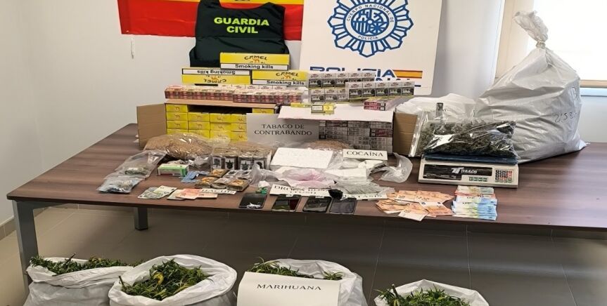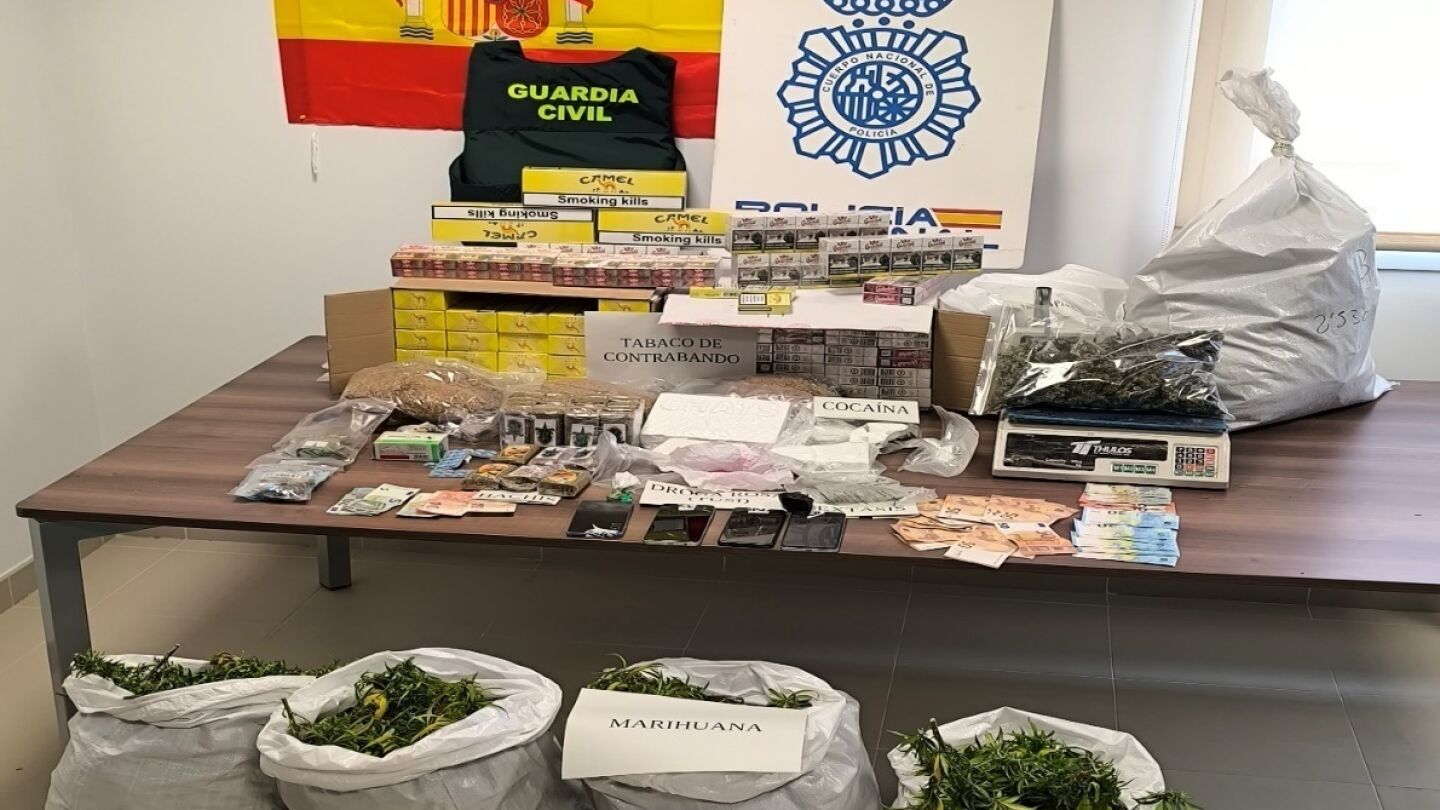 Durante estos registros, los investigadores aprehendieron 2.145 gramos de cocaína, 2.890 gramos de hachís, 36.30 gramos de marihuana, 295 gramos de cogollos de marihuana, así como el desmantelamiento de dos plantaciones de marihuana con 495 plantas en avanzado estado de floración, 1.073 cajetillas de tabaco de contrabando, 75 dosis de Viagra cuya comercialización está prohibida en la Unión Europea, y 67 gramos de heroína.