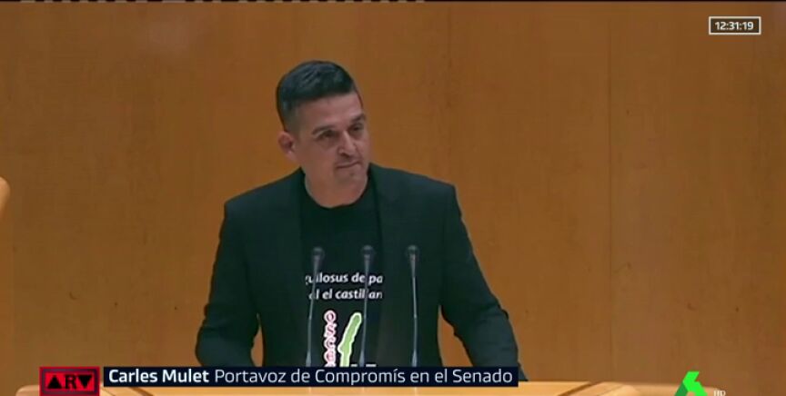 "Cataluña, Cataluña, Cataluña" y así durante más de un minuto. Ese fue el surrealista discurso de Carles Mulet en el Senado para denunciar que está harto de que en la Cámara sólo se hable de este tema.