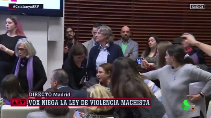Mientras Ortega Smith, que momentos antes negaba la existencia de la violencia de género, miraba para otro lado, la mujer le ha increpado su falta de empatía hacia las víctimas.