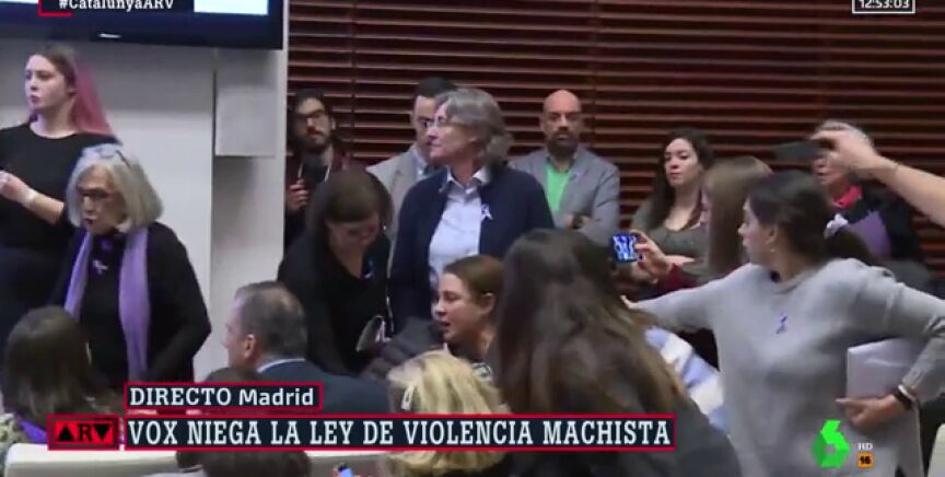 Una víctima de violencia machista se ha enfrentado al secretario general de Vox, después de que este atacara con dureza a la ley contra la violencia de género. Ortega Smith ha negando la existencia de este problema y ha llamado "chiringuitos" a las asociaciones que apoyan a las víctimas.