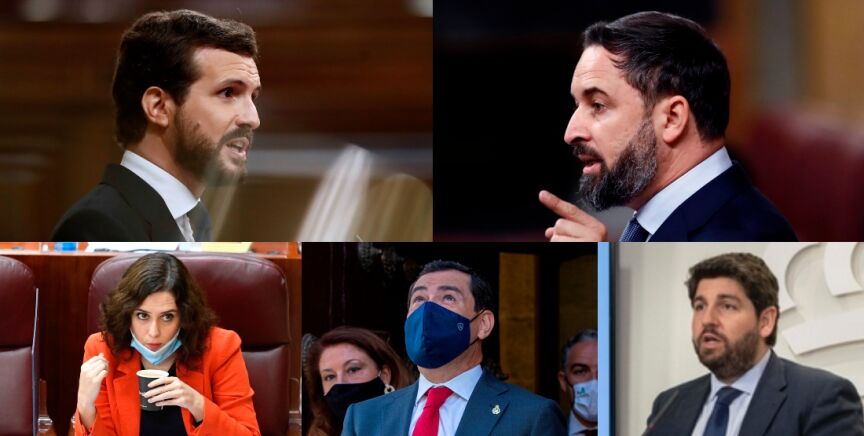 Giro radical del PP de Casado con respecto a Vox. Los populares han iniciado una campaña de rechazo al partido de extrema derecha, que sustenta varios de sus gobiernos: ¿Peligran los ejecutivos de Madrid, Andalucía, Murcia y diez municipios más?