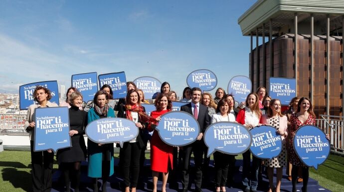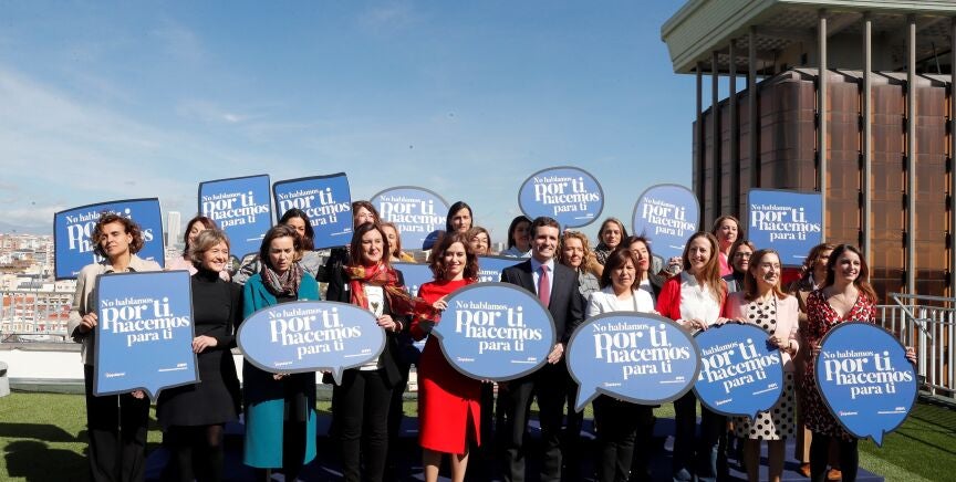 El Partido Popular ha celebrado su propio acto del 8M. Con el lema 'No hablamos por ti, hacemos para ti", Pablo Casado y las candidatas del partido se han distanciado de un discurso que, según ellas, está imponiendo la izquierda. "Rechazo el discurso por el cual dividen a hombres y mujeres. Es un discurso cada vez más fuerte que además pretende dividirnos entre mujeres buenas y malas", ha afirmado Isabel Díaz-Ayuso, candidata popular a la Comunidad de Madrid.