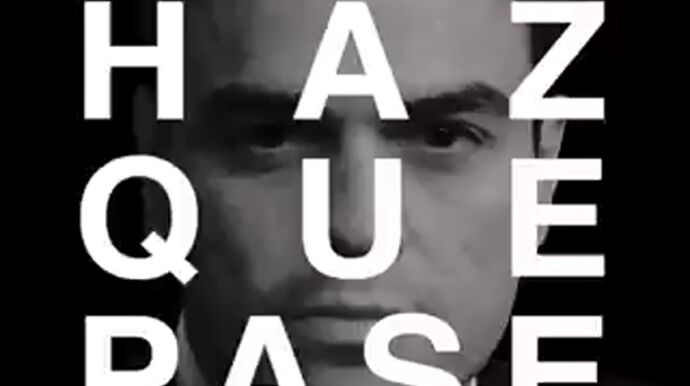 "Haz que pase" es el lema de la campaña electoral de Pedro Sánchez para el 28 de abril, que ha anunciado este martes en su cuenta de Twitter el PSOE. Los socialistas han desplegado en la fachada de su sede de la calle Ferraz un gran cartel en el que puede leerse esa llamada en letras rojas sobre la fotografía de la cara de Sánchez en blanco y negro.