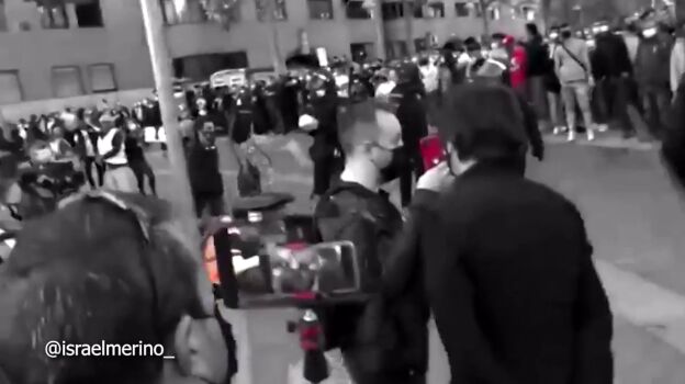 El periodista Israel Merino grabó el momento en que Maestre es acosado por simpatizantes del partido de extrema derecha: se ve cómo lo increpan y los antidisturbios han de intervenir y rodean al colaborador de laSexta.