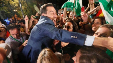 El presidente de la Junta, gran favorito desde el inicio de la carrera electoral, ha mejorado enormemente los resultados que cosechó en 2018. Esto es, ha pasado de ser segunda fuerza en un territorio históricamente socialista, con el 20,75% de los apoyos y 26 escaños, a consolidarse como líder del cambio de rumbo andaluz, ocupando la primera posición con el 43,12% de votos y 58 parlamentarios. Un ascenso sin precedentes en la región por el que se ha mostrado visiblemente eufórico ante los militantes y simpatizantes de su candidatura. Ante ellos, el renombrado máximo responsable de la Junta ha prometido "serenidad" y "humildad", aseverando, como no podía ser de otra forma, que gobernará para todos los andaluces.