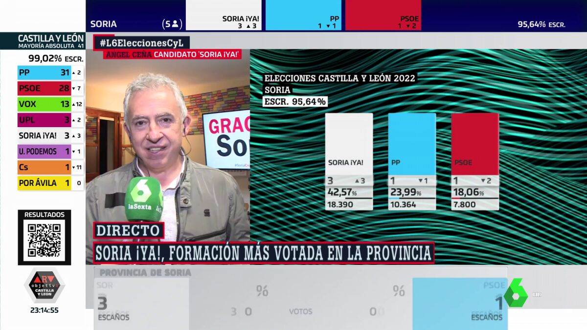 El sueño de Ángel Ceña y sus compañeros se ha hecho realidad. Aspiraban a tres procuradores en las Cortes de Castilla y León, de los cinco que estaban en juego en su provincia, y eso mismo han conseguido. Subidos a la ola de “la ilusión”, según explican desde la propia formación a laSexta.com, los sorianos han acudido a su cita con las urnas en mayor número que en las elecciones de 2019.