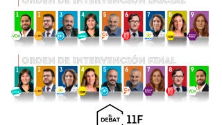 Así, Ignacio Garriga (Vox) hablará primero, seguido de Pere Aragonès (ERC), Alejandro Fernández (PP), Laura Borràs (Junts), Carlos Carrizosa (Cs), Salvador Illa (PSC), Àngels Chacón (PDeCAT), Laia Estrada (CUP) y Jessica Albiach (En Comú Podem).