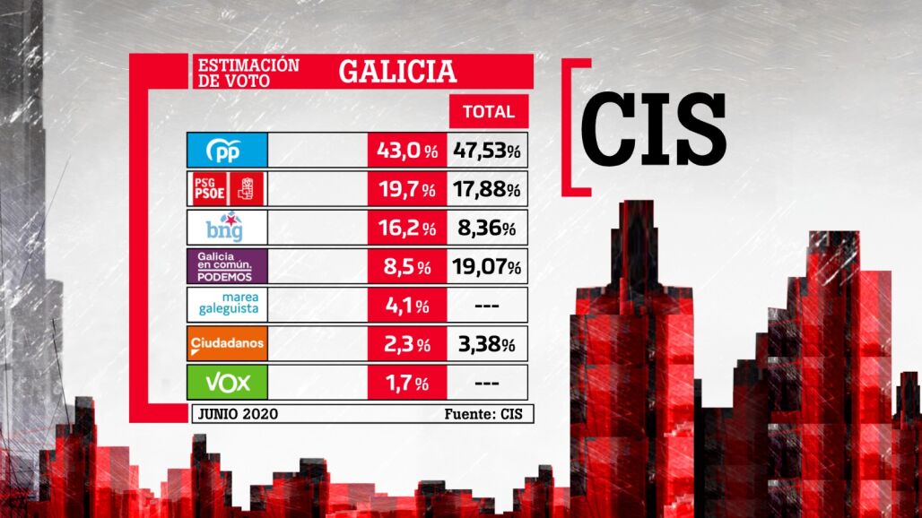 El PP obtendría entre 40 y 42 diputados en las elecciones autonómicas del próximo 12 de julio según la encuesta, que refuerza a PSOE y BNG, mientras que ni Ciudadanos ni Vox obtendrían escaño.