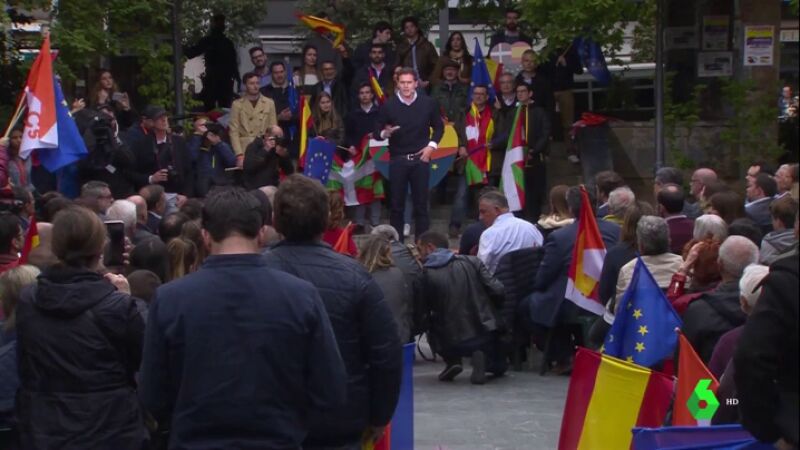Intento de boicot del acto de Albert Rivera en Errenteria. El líder de Ciudadanos ha respondido a los radicales que cuando gobierne no habrá homenajes a terroristas ni símbolos anticonstitucionales.