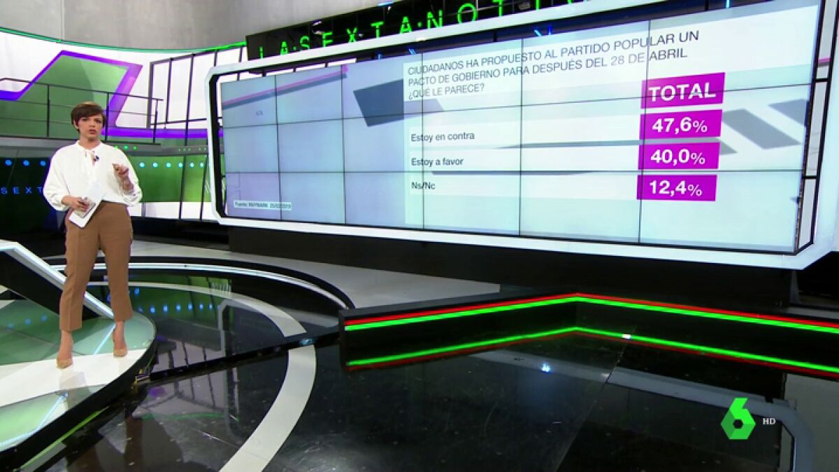 Barómetro laSexta: el 47,6% de encuestados está en contra de un pacto PP-Ciudadanos tras el 28A