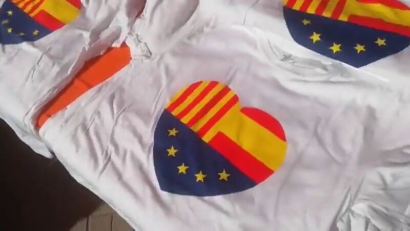 Allí se han querido mezclar sin muchas siglas de partido (apenas han colocado una carpa con el logo de Ciudadanos). El gran protagonismo del día se lo ha llevado un corazón estampado con las banderas de Cataluña, España y de la Unión Europea. Un símbolo para ellos del que ya tiraron en las elecciones catalanas del 25N de 2012 y con el que defienden que se sienten catalanes, españoles y europeos.