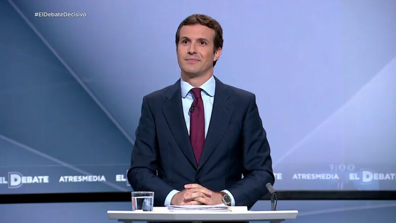 Pablo Casado ha comenzado su intervención en El Debate Decisivo de Atresmedia tras la pregunta de si será presidente a pesar de no ganar las elecciones, después de que Ana Pastor, presentadora del debate, le recordase sus afirmaciones cuando aseguraba que "el pilar de la regeneración es que gobierne el que gana las elecciones".