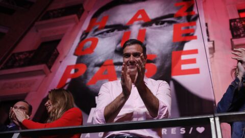 El presidente del Gobierno, Pedro Sánchez, rodeado de unas 200 personas, ha seguido desde la sede del PSOE en la Calle Ferraz el escrutinio.