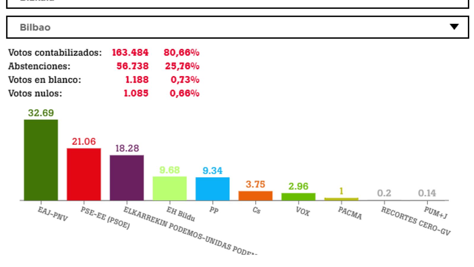 El PNV se reafirma como partido más votado y el PSOE pasa a ocupar el segundo puesto en la ciudad vasca.