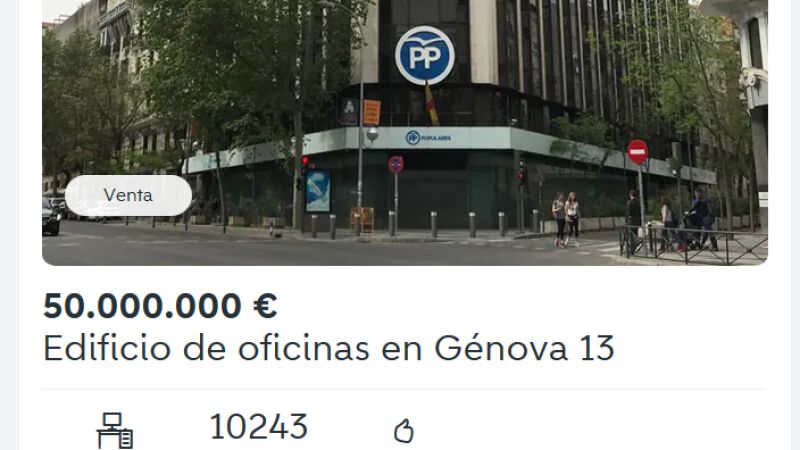 El usuario, Luis B., puso a la venta, en plena noche electoral, un "magnífico edificio de oficinas en pleno centro de Madrid" por 50 millones. Las redes no tardaron en hacer viral el anuncio publicado en Wallapop, se trataba de la sede del PP en Génova.