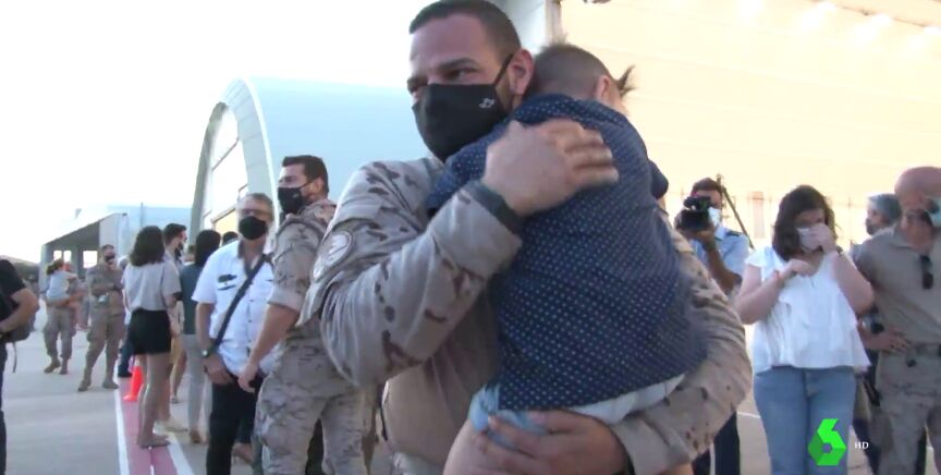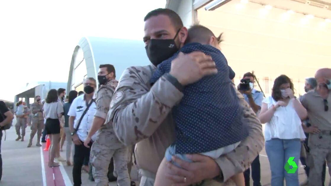Una de las imágenes más emotivas que ha dejado esta misión es la del reencuentro de un padre, militar desplazado en Afganistán, con su hijo tras bajar del avión. "Tu papá es un héroe, no te olvides nunca", decía la ministra al pequeño, como puede verse en el vídeo.