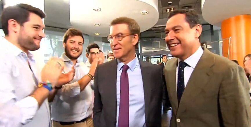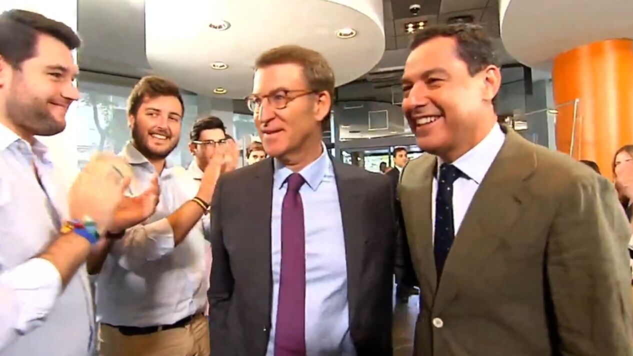 Alberto Núñez Feijóo, acompañado de su "califa", como ha llamado a Moreno tras su victoria en Andalucía, ha prometido dar al presidente de la Junta el homenaje "que merece".
