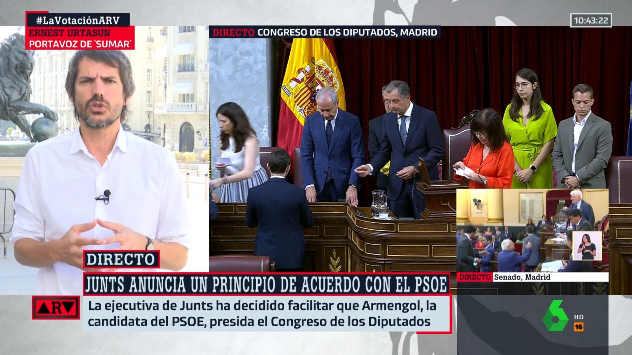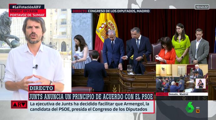 Ernest Urtasun, portavoz de Sumar, ha reconocido en Al Rojo Vivo que lo sucedido hoy en el Congreso de los Diputados es "muy importante" para que haya "una mayoría plurinacional".