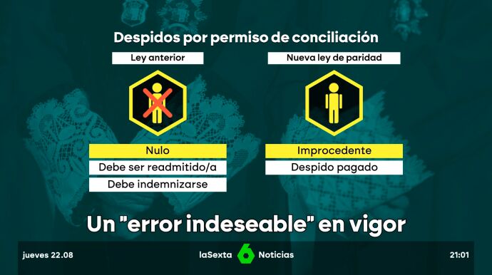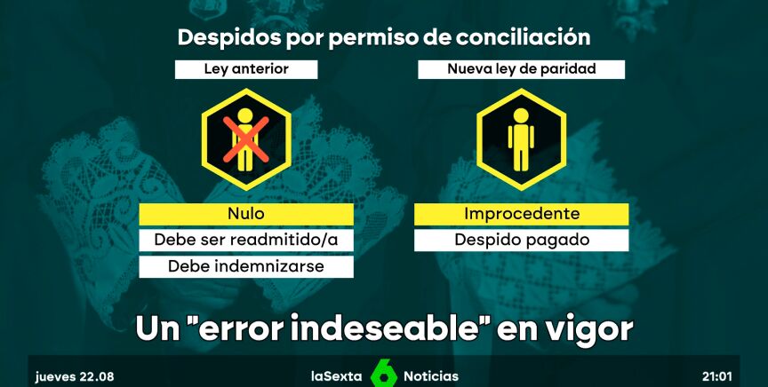 Desde hoy, con esta norma los trabajadores con permiso para conciliar están más desprotegidos ante el despido. La ministra de Igualdad, Ana Redondo, asegura que este fallo va a ser "subsanado a la mayor brevedad posible" y ha hecho hincapié en que lo importante es que "se avance en derechos, nunca se retroceda".