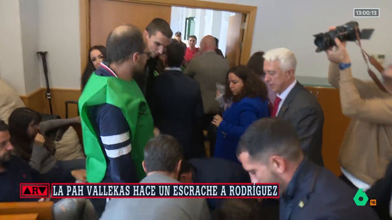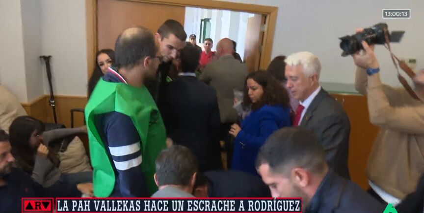 A través de sus redes sociales, la PAH de Vallekas ha explicado que ha llevado a cabo este "escrache al Gobierno" para "estropearles la foto y contarles el día a día de nuestros barrios: desahucios y subidas asfixiantes de hipotecas y alquiler".