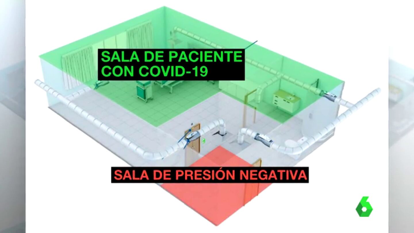 Pocos hospitales españoles disponen en sus unidades de cuidados intensivos de un sistema de esclusas. Se trata de habitaciones estancas, antesalas diseñadas para para evitar que pacientes con una enfermedad contagiosa, como la COVID-19, puedan propagar el virus a través del aire.