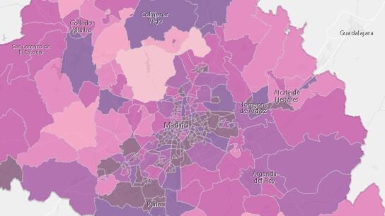 En una situación crítica, considerada por encima de los 700 casos, la Comunidad de Madrid destaca diversos municipios y distritos de la ciudad de Madrid a los que también se debería prestar especial atención: