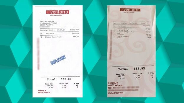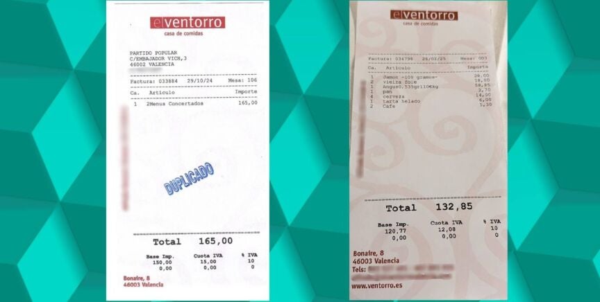 Al compararla con un ticket emitido de forma habitual en el mismo restaurante, sin embargo, saltan a la vista las distintas diferencias, aunque destaca una: el desglose de lo consumido. Mientras en una aparece la consumición con todo lo que comieron y bebieron especificado al detalle, en la de la comida de Mazón con Vilaplana solo aparece lo siguiente: "2 menús concertados".