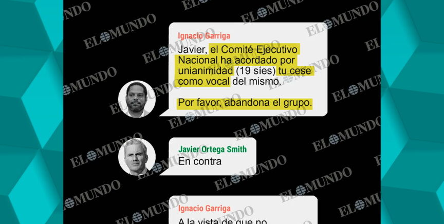 "Javier, por favor, abandona el grupo". Así es como la dirección de Vox, personificada en Ignacio Garriga, comunicó a Ortega Smith vía WhatsApp que debía abandonar el chat del Comité Ejecutivo Nacional porque ya no formaba parte de la misma.