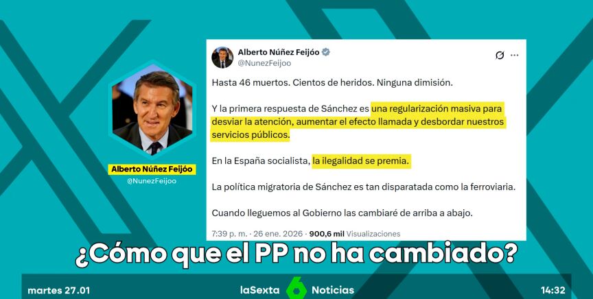 La hemeroteca retrata los vaivenes del PP con las regularizaciones de personas migrantes. El líder del PP, Alberto Núñez Feijóo, afirmaba en una entrevista en la Cope en abril de 2024 que "hay un debate que debemos dar y debemos de zanjar. Con los inmigrantes que viven en España y que trabajan en España, pero que no obtienen o no han obtenido de momento papeles". "Y esos pueden estar tranquilos, que este partido es sensible con ellos y buscaremos soluciones para una inclusión social correcta y legal en nuestro país", prometía Feijóo tras apoyar el inicio de la tramitación de la iniciativa legislativa popular para regularizar a migrantes.
