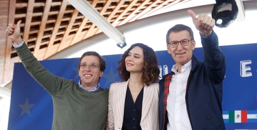 En un acto en Madrid, y flanqueado por Almeida y Ayuso, Núñez-Feijoo ha afirmado que él cree en "las políticas de puentes, y no en la de trincheras", mientras que Ayuso ha acusado al Gobierno de "vender las mayores inmoralidades como si fueran grandes avances".
