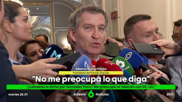 "No me preocupa lo que diga un diputado o lo que diga un dirigente político, lo que me preocupa es que el presidente del Gobierno está jugando en contra de los intereses de España en esa relación tosca y hostil con Estados Unidos", ha afirmado Feijóo.