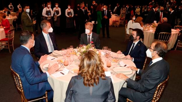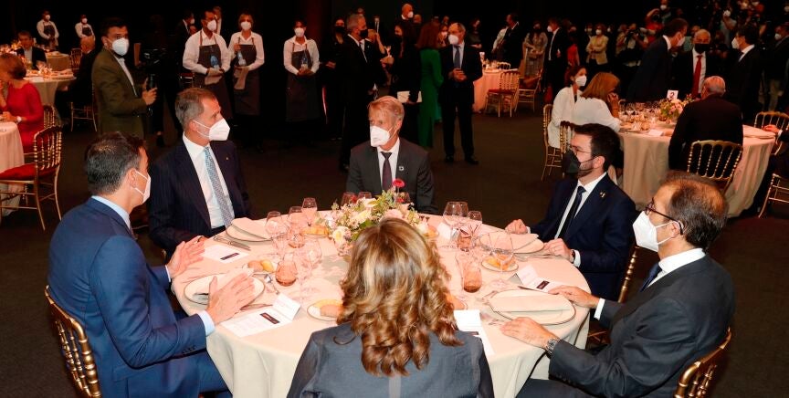 Ada Colau, en su discurso previo a la cena, ha destacado la "importancia" de que Gobierno, Generalitat y Corona estén juntos en este acto. Aragonès, por su parte, apuesta por el valor de "trabajar en equipo".