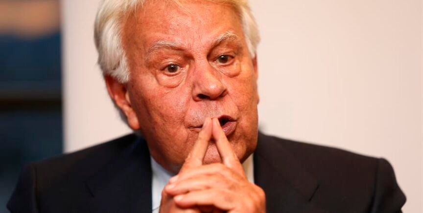 El expresidente del Gobierno, Felipe González, ha intentado relativizar el escándalo del espionaje al Gobierno que ha salido a la luz estos días y sobre el que aún hay muchas dudas. "Me preocupa que lo inmediático nos impida hablar de los problemas que enfrentamos, que son serios. No digo que no sea importante. ¿Nos pasa a nosotros solo? No, le pasa a 50 países", defiende González recordando espionajes a Emmanuel Macron y a Angela Merkel.