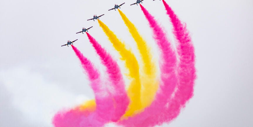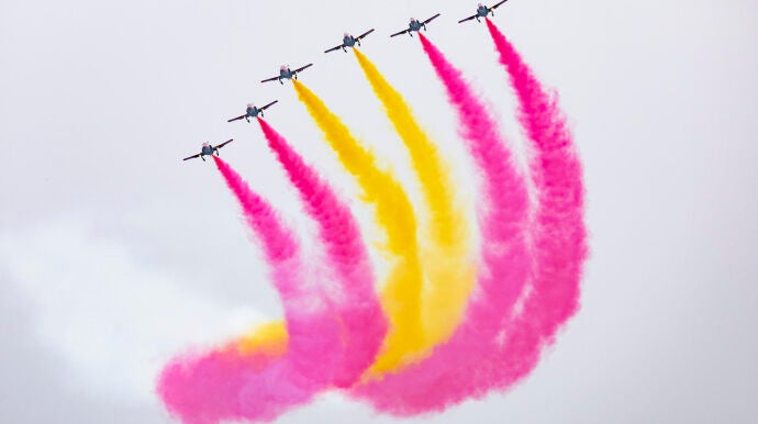 La Patrulla Águila cumple 40 años llenando el cielo de colores y con la presencia de Felipe VI