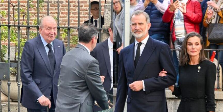 La reina Letizia, vestida de negro, ha lucido un broche de brillantes con una perla que perteneció a la reina Victoria Eugenia. Juan Carlos I viajó a Madrid el pasado viernes para asistir al día siguiente a la boda del alcalde de Madrid, José Luis Martínez-Almeida, y de Teresa Urquijo, en la que también estuvieron sus dos hijas y doña Sofía, si bien esta solo fue al convite. El emérito no asistió a la capilla ardiente ni al entierro de Gómez-Acebo al encontrarse en Baréin presenciando la carrera de Fórmula Uno.