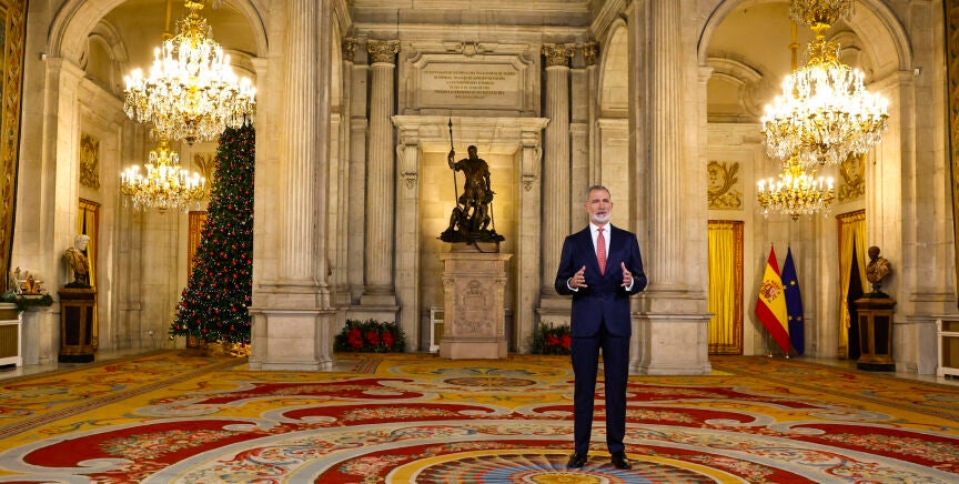 Entre líneas El tradicional mensaje de Navidad de Felipe VI desde el Palacio Real tuvo novedades reseñables. Por primera vez vimos al monarca de pie dentro de un formato más cercano para un mensaje rompedor en las formas pero con una idea muy clara en el fondo.