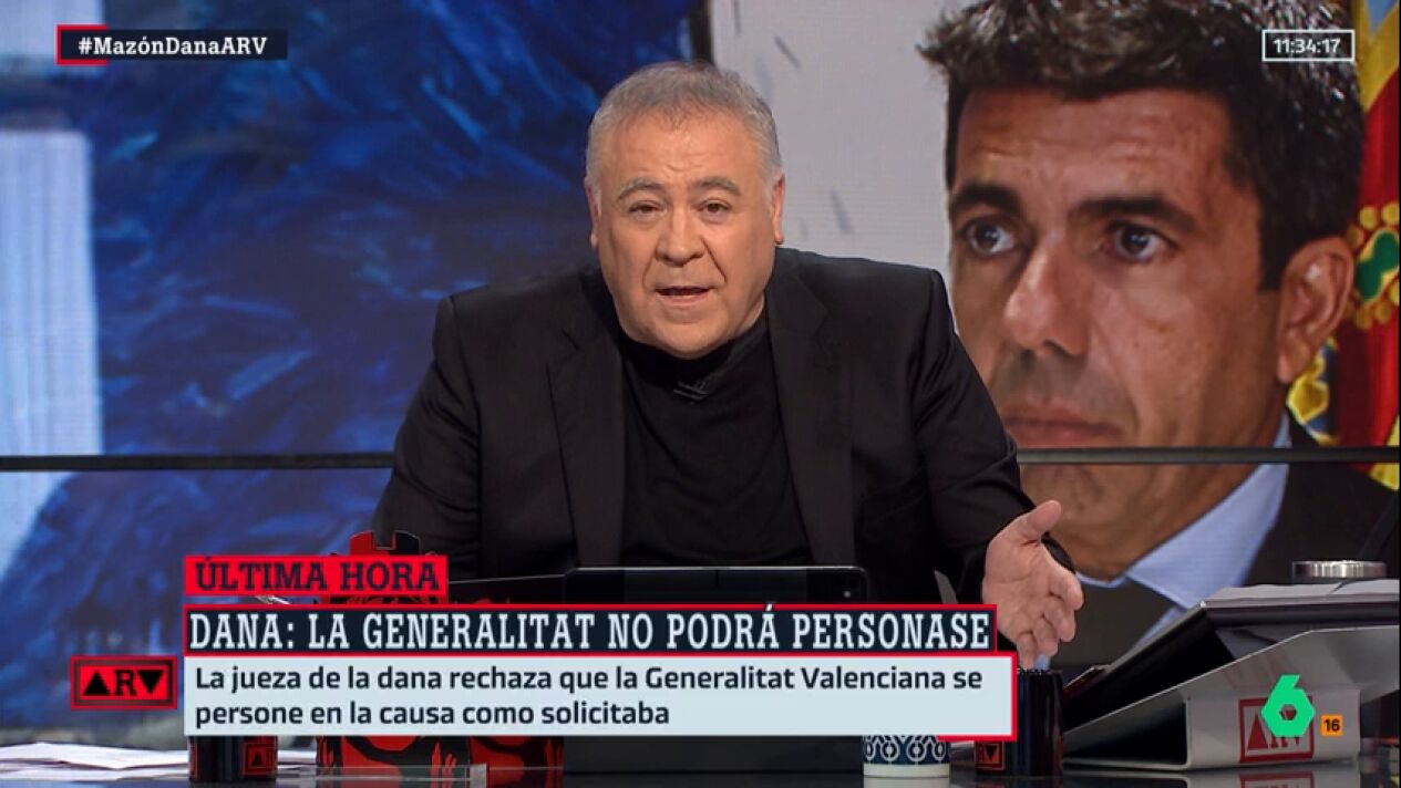 El presentador ha reaccionado a la decisión de la jueza de la DANA, que ha denegado la personación de la Generalitat en la causa como responsable civil subsidiaria al entender que "no es procedente" en este momento procesal.