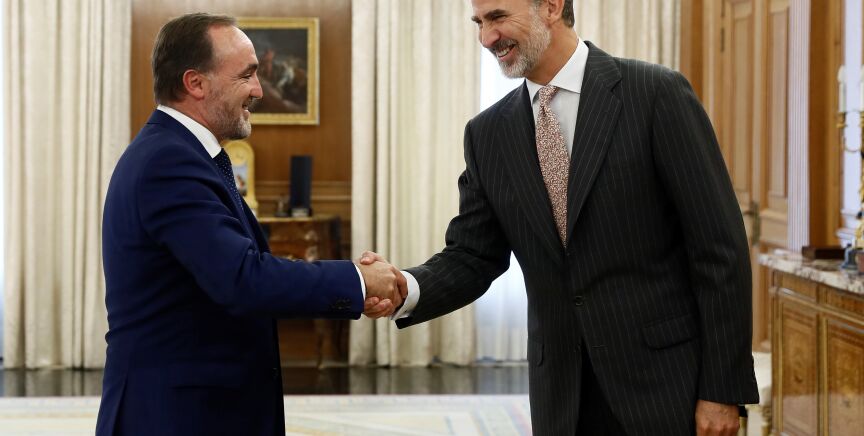El rey Felipe ha recibido al último dirigente de la primera sesión de la ronda de consultas. Javier Esparza, presidente de Unión del Pueblo Navarro (UPN), ha trasladado al monarca su negativa a facilitar la investidura de Pedro Sánchez. Una opción que sí dejó abierta en la primera ronda de reuniones, que se llevó a cabo a principios de junio.