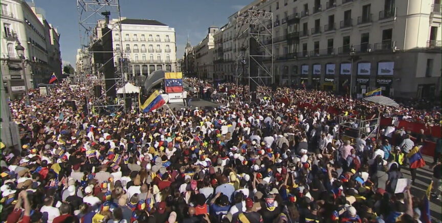 Mientras, entre gritos y música, Machado confesaba lo feliz que se sentía de poder asistir a tal evento. Madrid se convirtió así en la capital de la esperanza venezolana, reuniendo a miles de compatriotas de todas las edades.