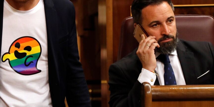 Gaysper 'persigue' a Santiago Abascal en el Congreso de los Diputados