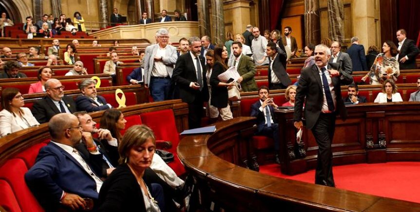 El pleno del Parlament aprobó una resolución en la que reivindica la "legitimidad de la desobediencia civil e institucional". Moncloa advierte de que estudia ya todos los acuerdos aprobados por la cámara catalana para impugnarlos.