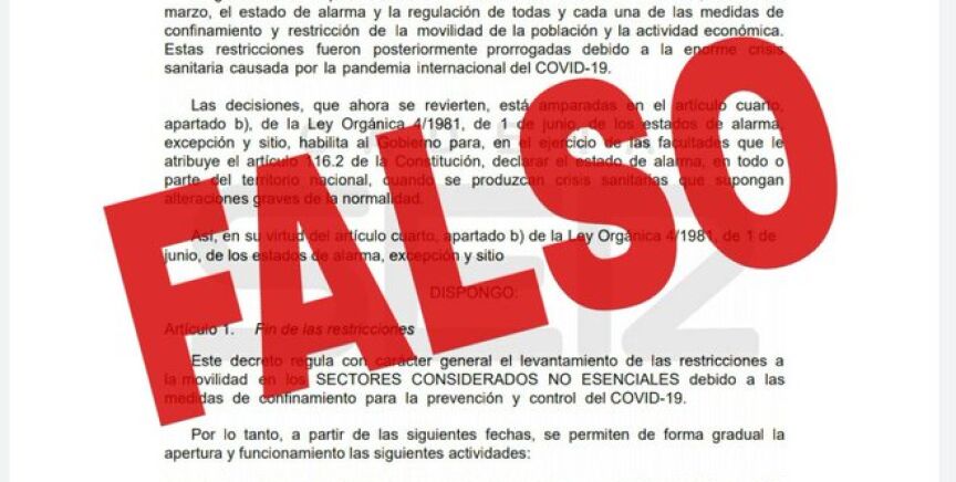 A través de distintas redes sociales está circulando una información falsa acerca de las presuntas fechas que manejaría el Gobierno para poner fin al confinamiento en distintos sectores.