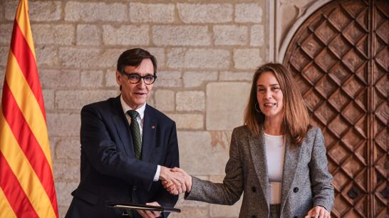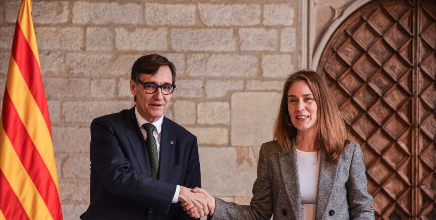 El presidente de la Generalitat, Salvador Illa, y la presidenta de los Comuns en el Parlament, Jéssica Albiach, han rubricado este jueves el pacto, que incluye la modificación de la ley de urbanismo para limitar la compra especulativa de vivienda, con el objetivo de que se pueda aplicar "antes de verano".