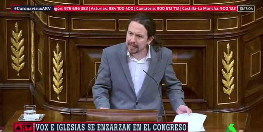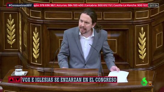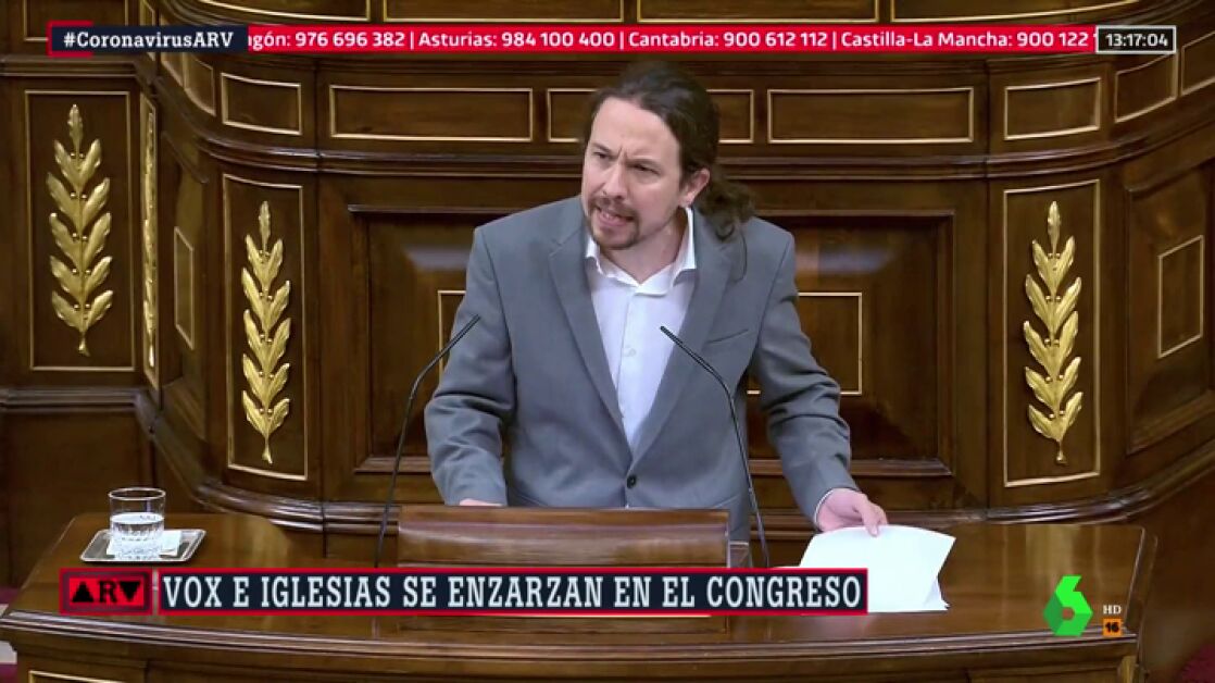 Vox y Pablo Iglesias se enzarzan en el Congreso y se lanzan duros reproches. El vicepresidente ha acusado a Vox de "defender los intereses de los buitres", mientras que el partido de Abascal considera que Iglesias "no quiere acabar con el dolor".
