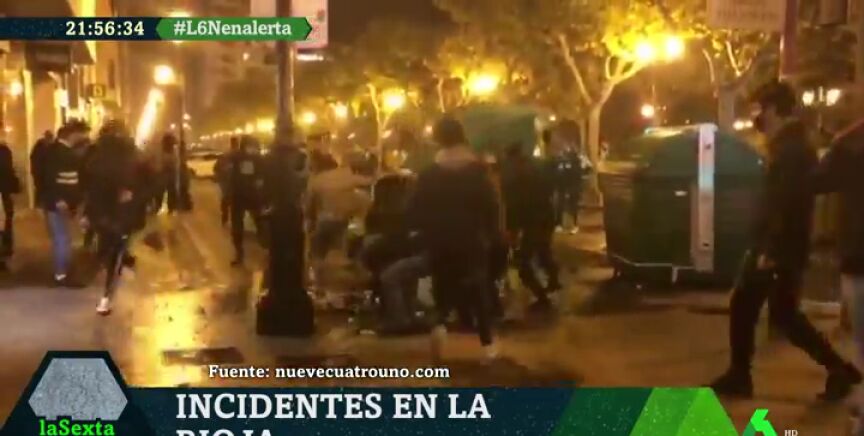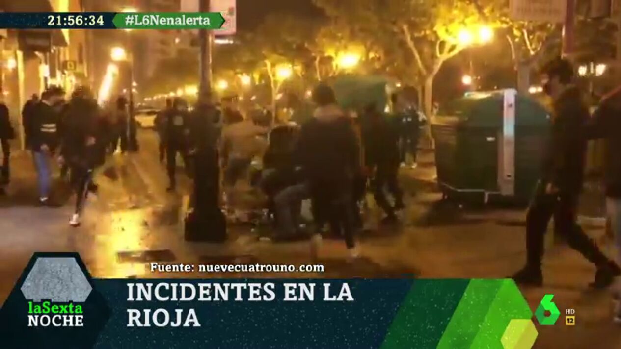 Manuel Martín, periodista de 'nuevecuatrouno.com', ha señalado en laSexta Noche que "alrededor de las 20:00 horas, una concentración que había convocado la hostelería de la región para protestar contra el cierre en Logroño ha sido aprovechada por un grupo de 150 radicales, que nada tenían que ver con los hosteleros, pero que se han infiltrado en la manifestación".