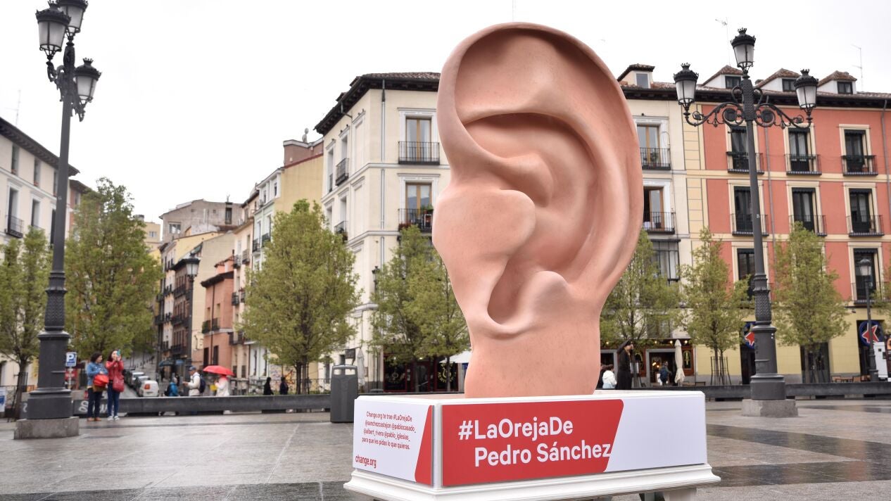 "Queremos llevar a la calle la voz de los más de 14 millones de ciudadanos que se movilizan en nuestra plataforma. Son los políticos quienes marcan la agenda y quienes deciden de qué se habla en cada momento", señala el comunicado. En la plaza de Isabel II (Ópera) se colocará la primera instalación este martes y el miércoles la representación de la oreja se podrá ver en Alonso Martínez.