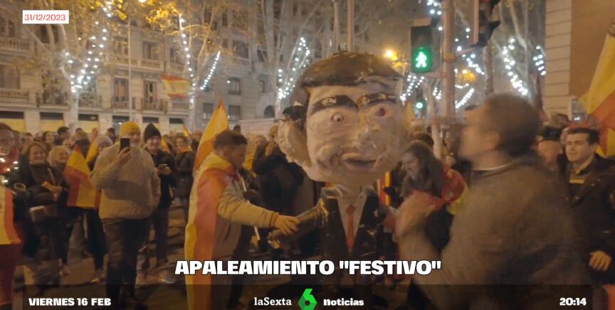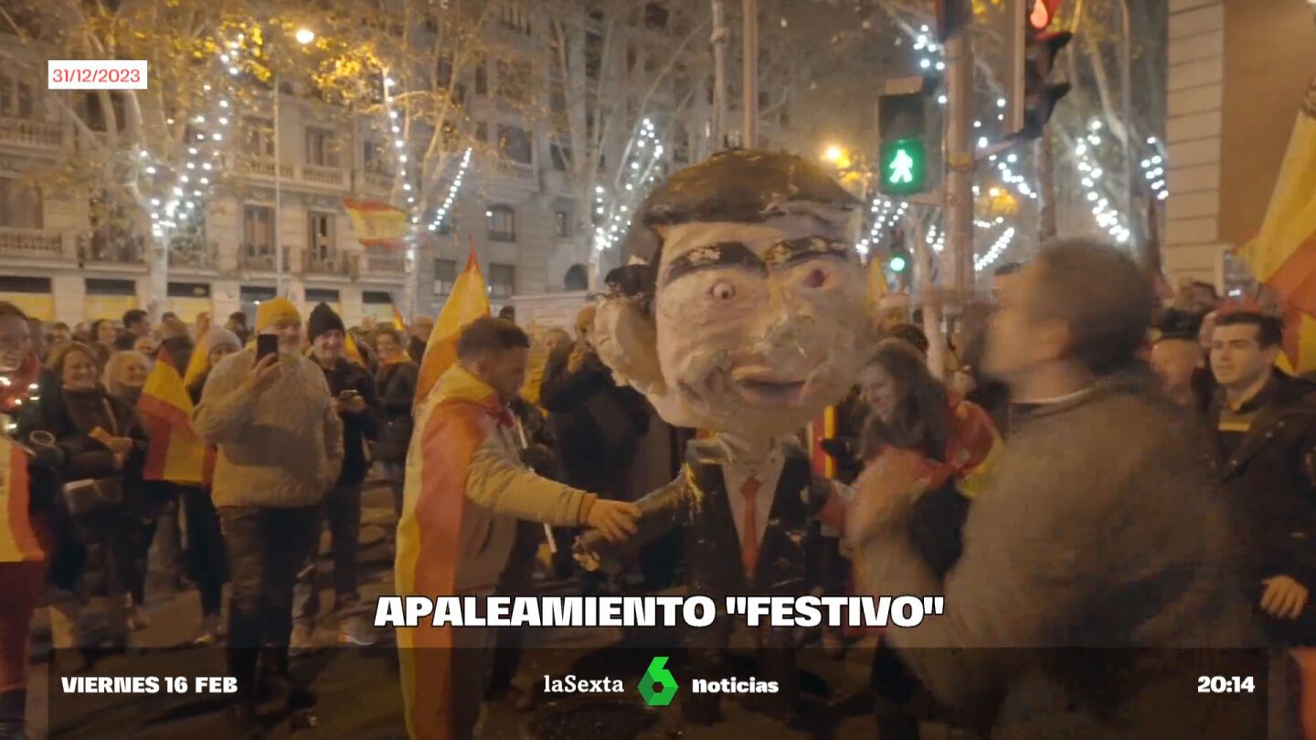 La titular del juzgado de instrucción número 23 de Madrid ha rechazado que haya delito en el apaleamiento a un muñeco que representaba a Pedro Sánchez durante la protesta organizada la pasada Nochevieja frente a Ferraz. La jueza argumenta en el auto donde archiva la investigación que "en la concentración del día 31 de diciembre se desconoce la ideología de los asistentes y si esta es común a los mismos". "No se les vincula con ningún grupo. Por ello, difícilmente puede considerarse que con la conducta analizada expresen odio hacia otro grupo", defiende.